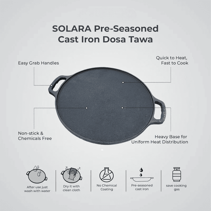 Cast Iron Dosa/Roti Tawa with Double Handle